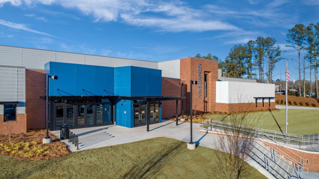 Located in Adams Park, the one-story facility offers an open gymnasium boasting three multi-sport courts, a 5,200-square-foot mezzanine-level walking track, a gymnastics center, two fitness rooms, and office space. The Recreation Center was creatively designed to be constructed in two phases during the 2016 SPLOST. However, during permitting and with the approval of the 2022 referendum, both phases were released for construction simultaneously.